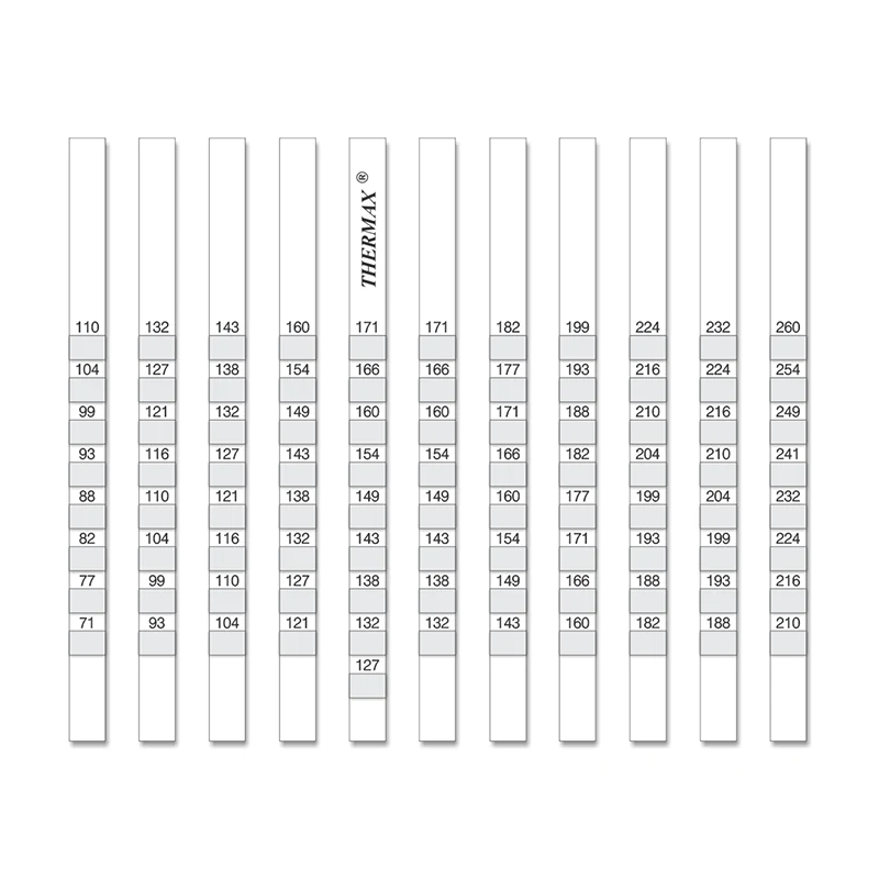 Indicatoarele de temperatură ireversibile (etichete ireversibile) sunt disponibile în intervalul de temperatură de la -17 °C la + 1270 °C, utilizate în numeroase aplicații, cum ar fi alimentație, medicină, industria auto, industria aeronautică. Alegeți din gama noastră de etichete ireversibile.