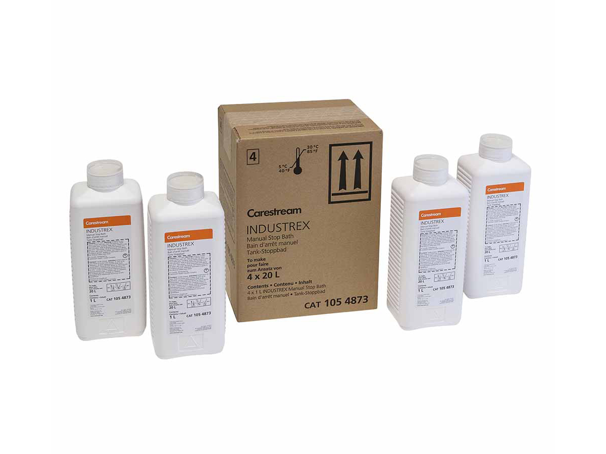 1L bottle of single part concentrate when mixed provides 20L/5 gallons of working strength stop bath solution used in manual processing applications. Manual Stop Bath is odorless and contains a color indicator that turns color at pH 5.2 from orange-yellow to magenta/red when exhausted. Single part concentrate dilutes 1+19 w/H2O.