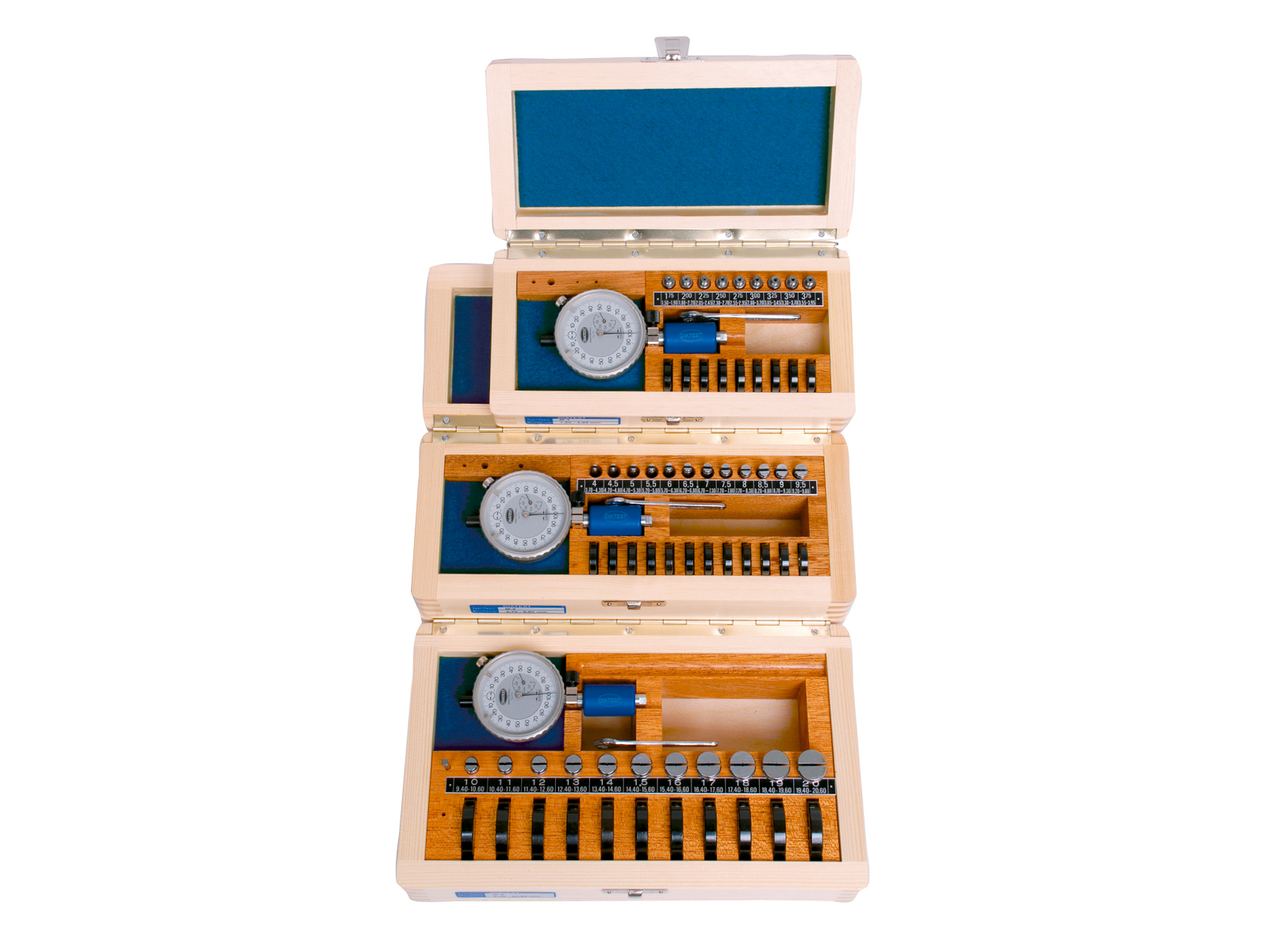 A large assortment of accessories completes the split ball range. Sets of Split Ball probes in a wooden box can be purchased, e. g. with a measurement range of 3.7 to 9.8 mm. Mechanical indicators with a resolution of 0.01 resp. 0.001 mm can be used for display, or digital min-max indicators which can transfer the measured values via DIAWIRELESS.