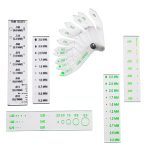 Transparent template with fluorescent dot, circle and line marks for precise determination of sizes of indications for magnetic particle testing.