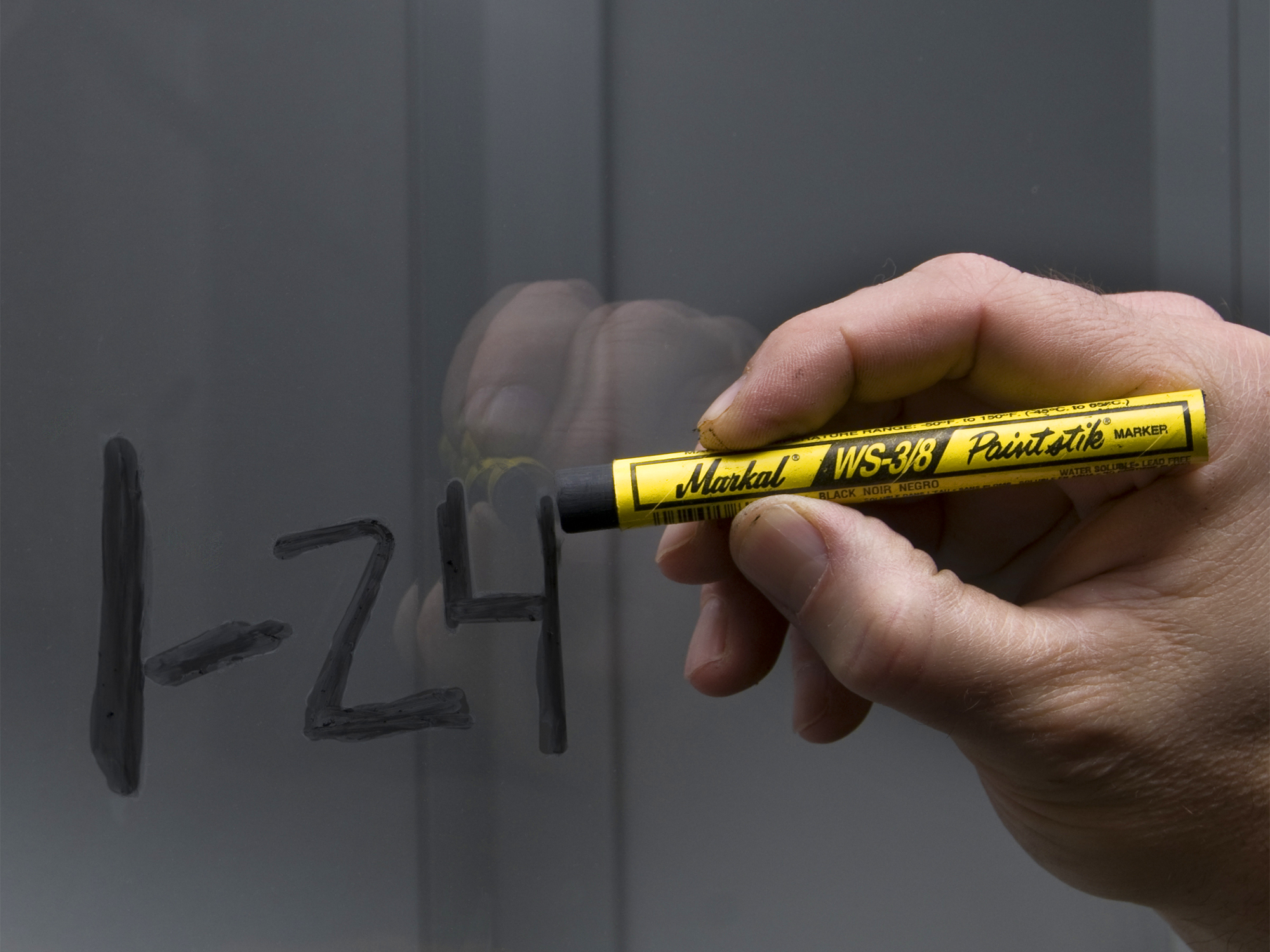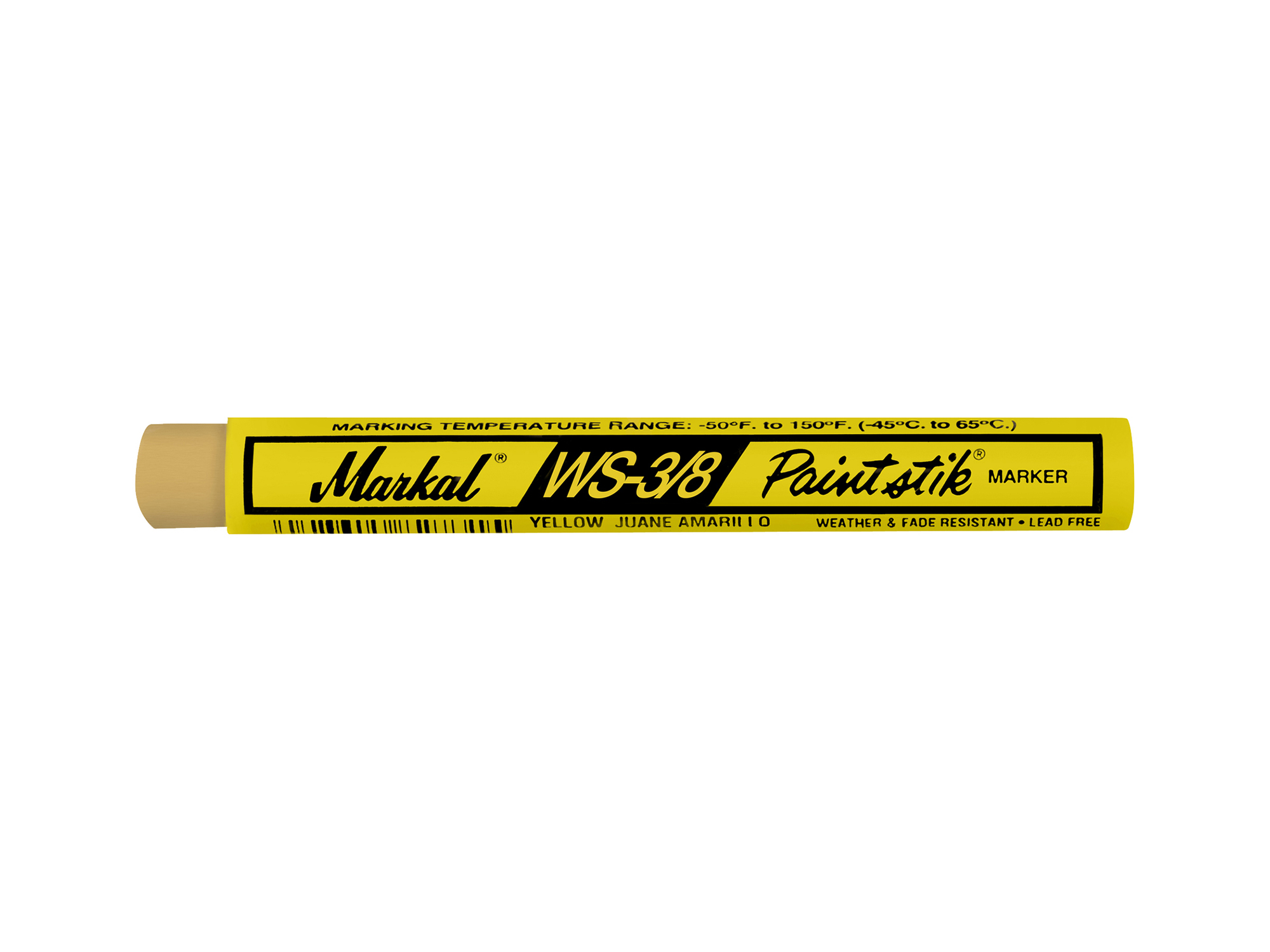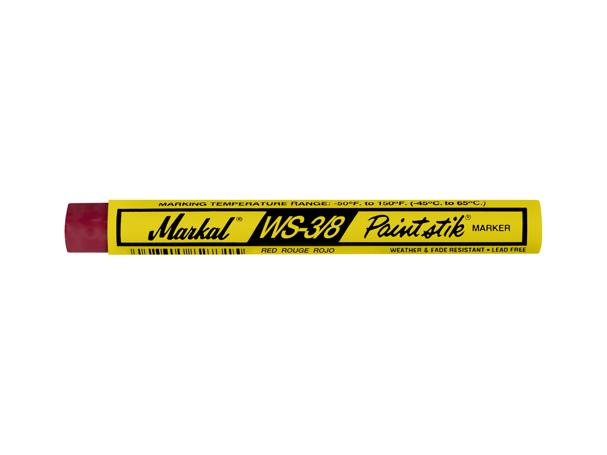 The smooth-writing WS-3/8 Paintstik is a removable solid paint crayon. The fine line marks are easily wiped away with water and will not ghost on non-porous surfaces.