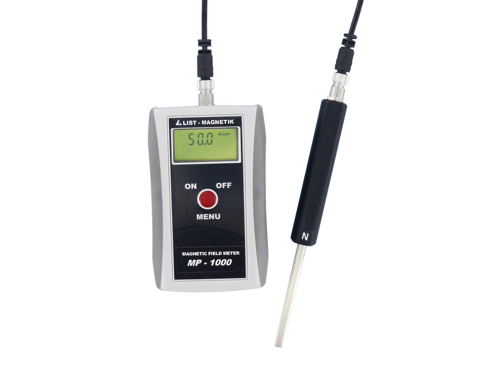 The List-Magnetik MP-1000 magnetic field meter is a handy universal device with externally connectable tangential and axial field probes for the precise measurement of all types of magnetic fields: steady DC fields, alternating AC fields and pulsed fields. With the easy one-button operation, magnetic field strength can be measured from the weak earth magnetic field up to strong fields of 20,000 A/cm, switchable in Gauss/Oersted.