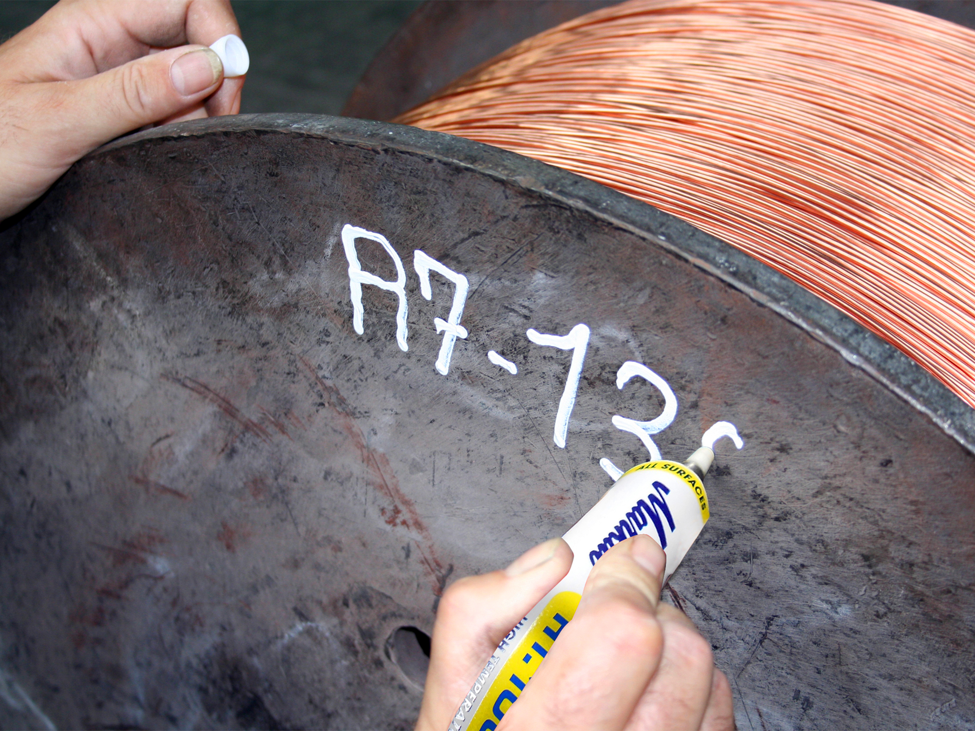 High Temperature Permanent Marker HT.1000 – is a metal-ball tip marker that is ideal for annealing and heat-treating operations. Mark at ambient temperature and the high-performance paint withstands temperatures up to 1000°C. The aluminum squeeze tube and thick paint makes it suitable for rough, vertical and overhead surfaces with excellent adhesion on oily and wet surfaces.