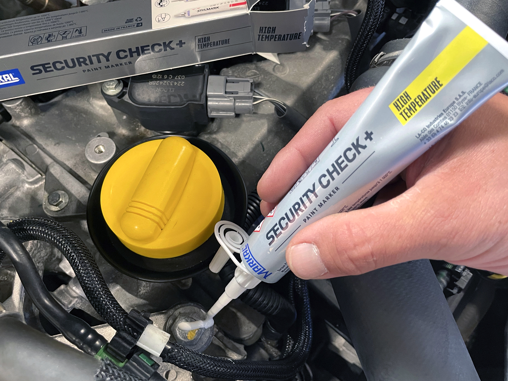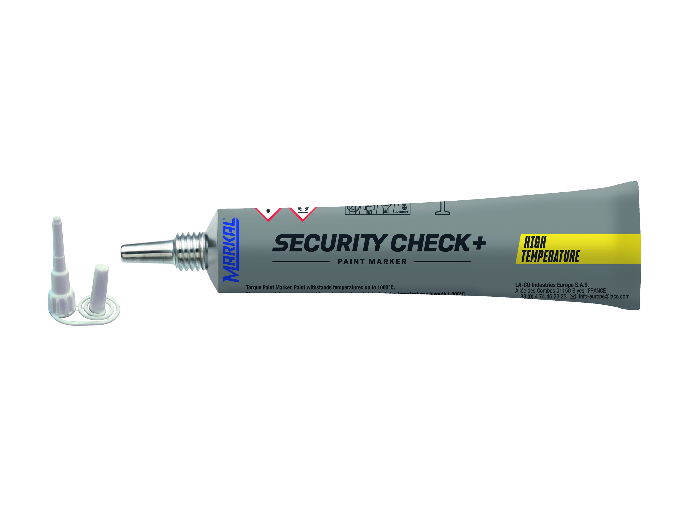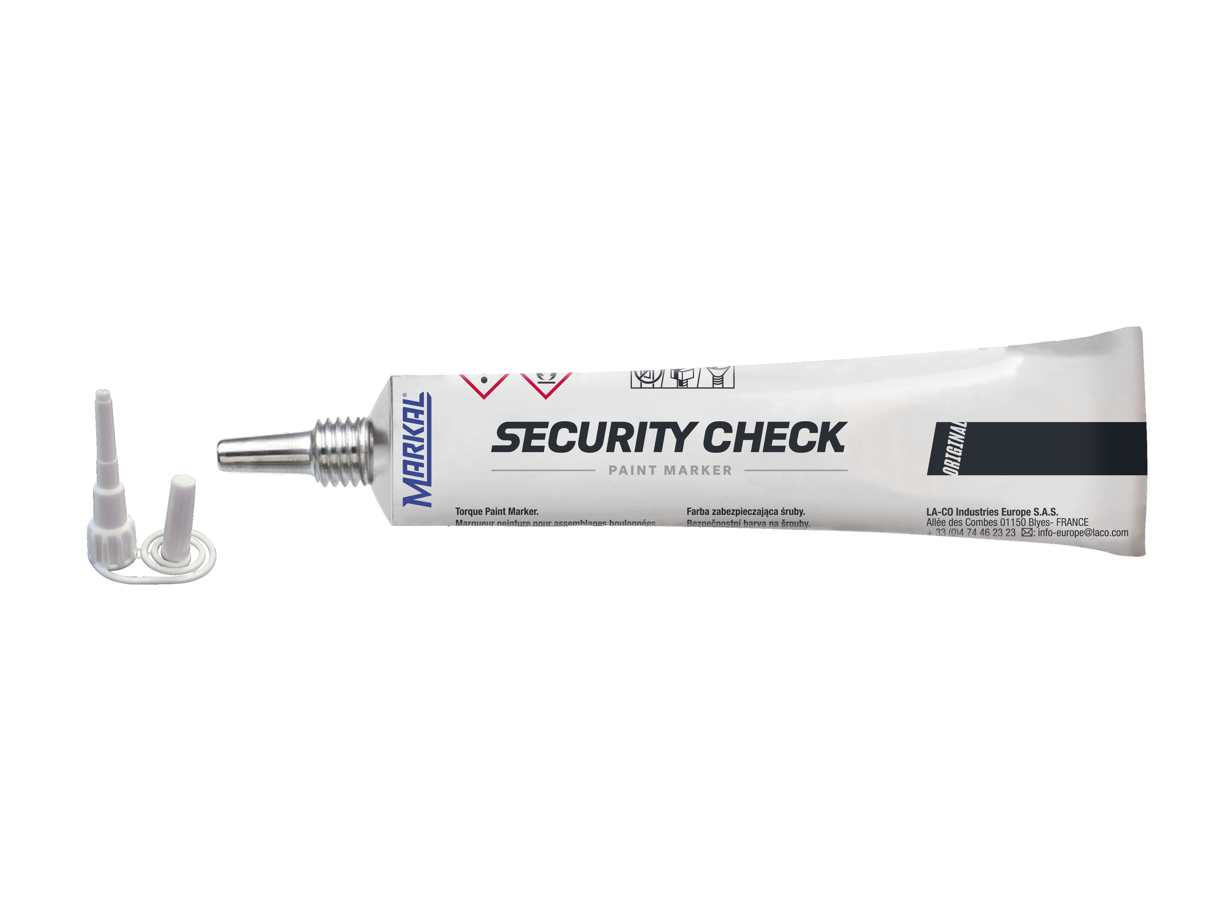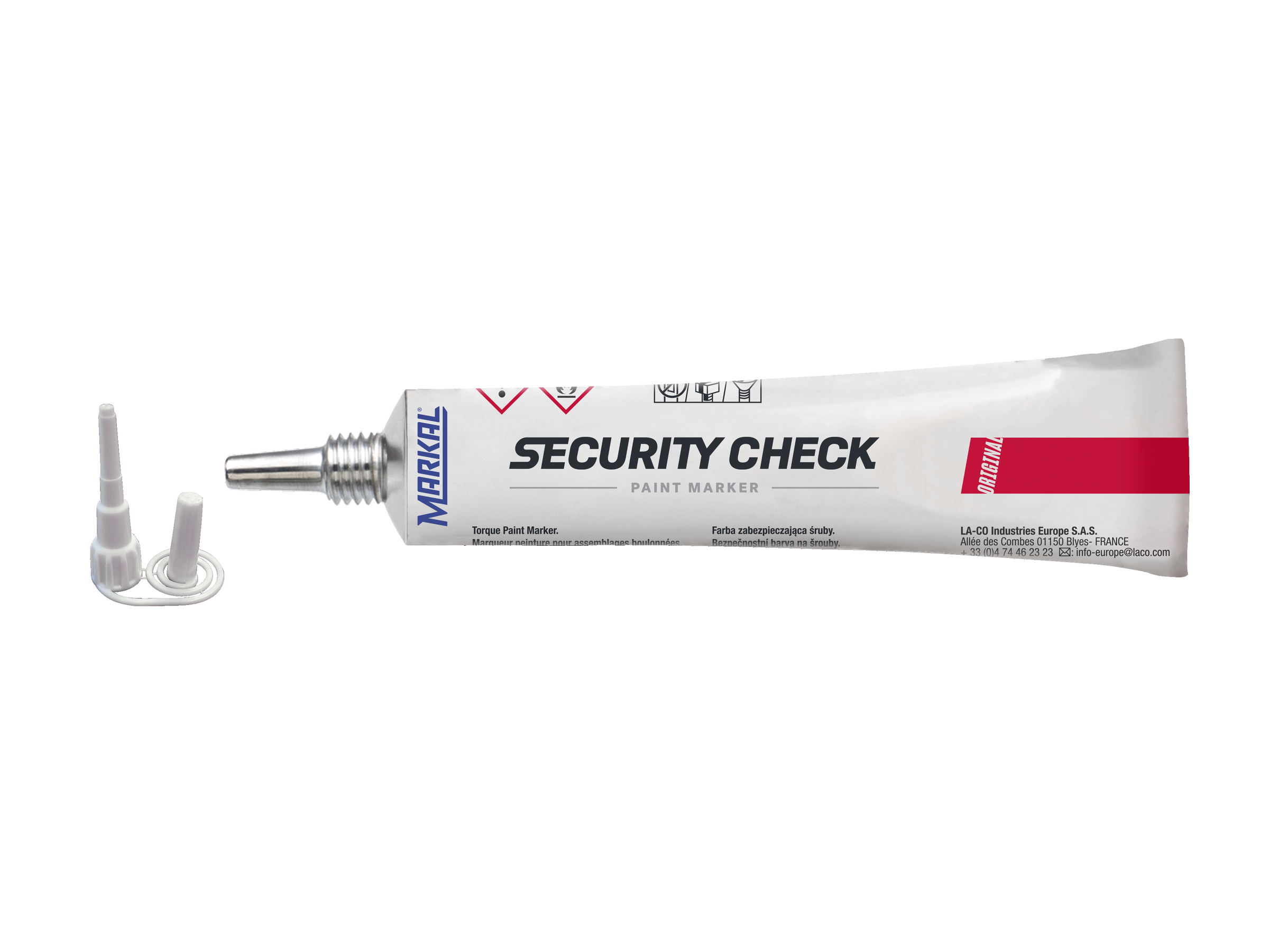 SECURITY CHECK PAINT MARKER – is perfect for indicating tampering or loosening of bolts or parts, Markal Security Check paint provides an easy-to-read visual indication. The non-drip formula easily applies across bolt threads and cracks when loosened. Plastic tip sold in pack of 48.