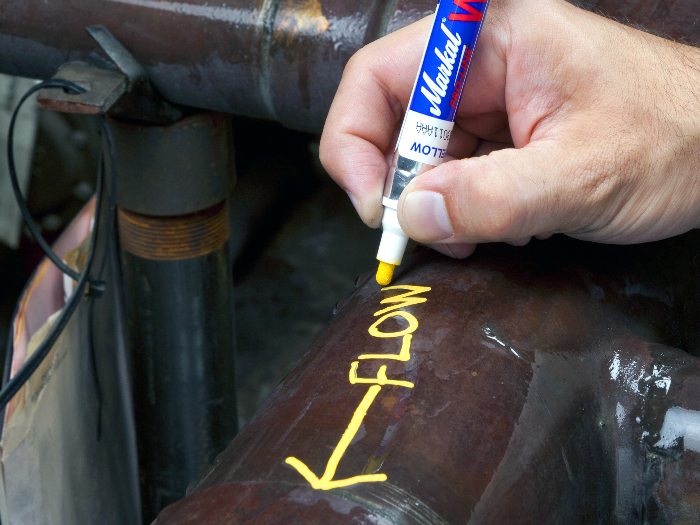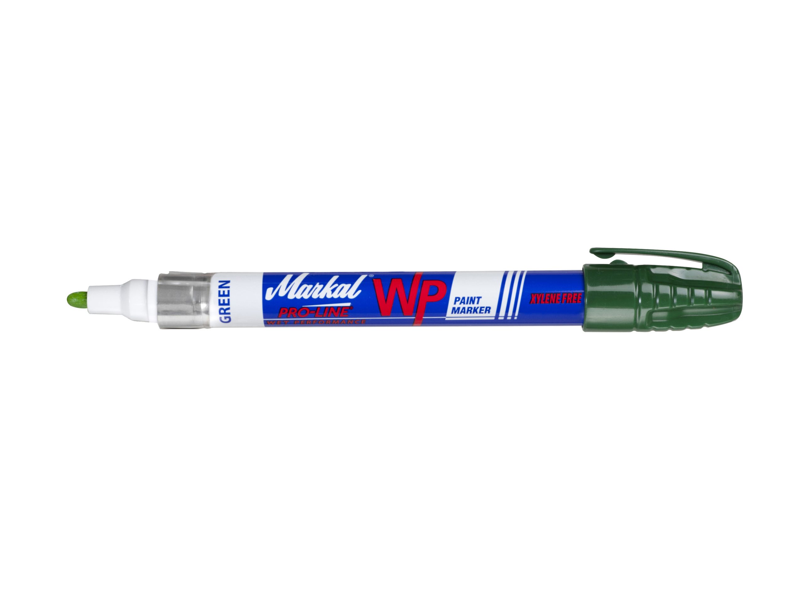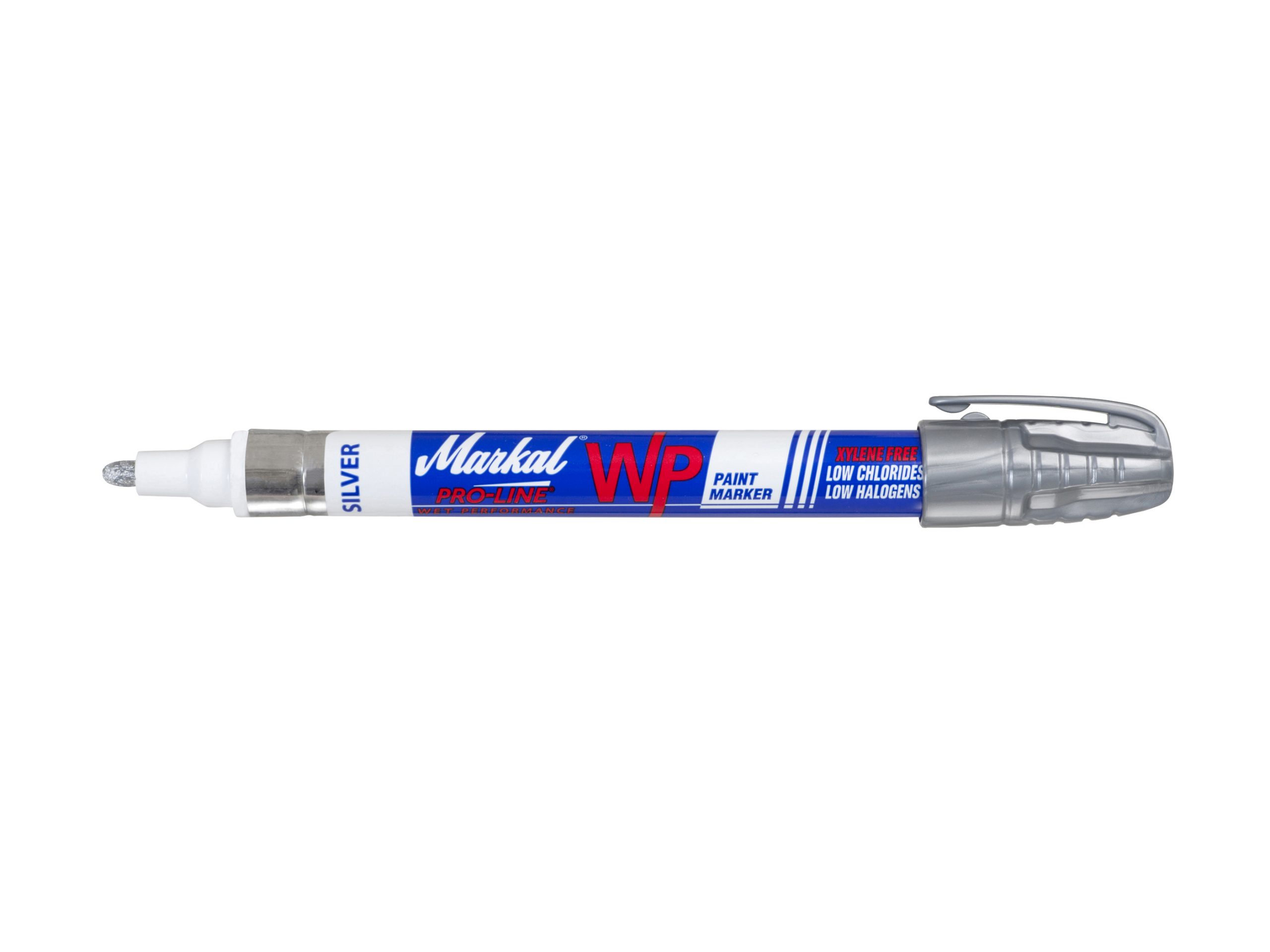 Permanent Paint Marker for Wet-Surfaces PRO-LINE WP – marker for industrial graphics with liquid quick-drying paint is designed for wet and damp surfaces. A unique formula of paint provides improved adhesion to wet surfaces, prevents erosion on contact with water. Leaves a legible readable inscription for a long time, resistant to fading and mechanical wear. The marking is not affected by acids, solvents, oils and other corrosive substances. The metal body of the marker and the double-sided replaceable felt tip allow the marker to be used in industrial conditions for a long time.