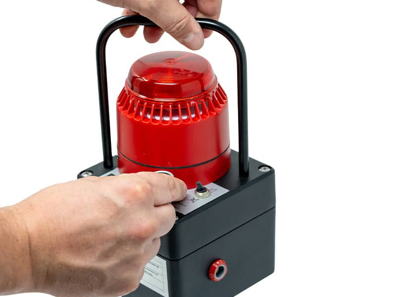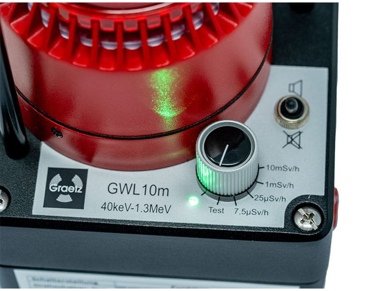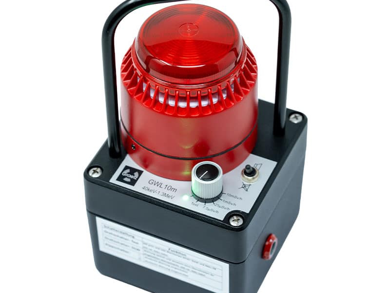 Baliză de alarmare radiații GWL 10m – este un aparat pentru monitorizare de arie dozimetrică, măsurând debitul dozei, alimentat cu acumulator independent de rețeaua electrică.