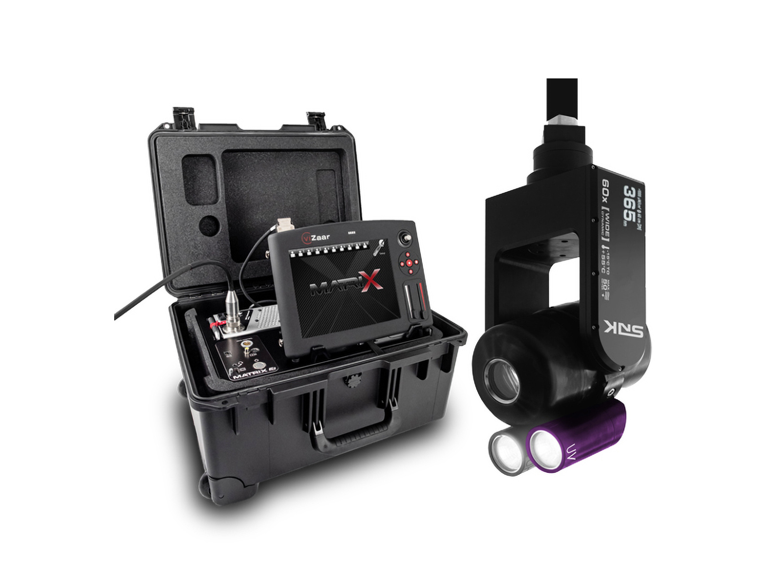 Cameră inspecție țevi SNK Ultra 365 – echipat suplimentar și cu iluminare UV cu LED-uri. Astfel, acest sistem poate fi utilizat si pentru detectarea si localizarea defectelor și fisurilor (cu ajutorul lichidelor penetrante), pe care altfel nu le-ați putea vedea in interiorul diferitelor tipuri de vase sau rezervoare.