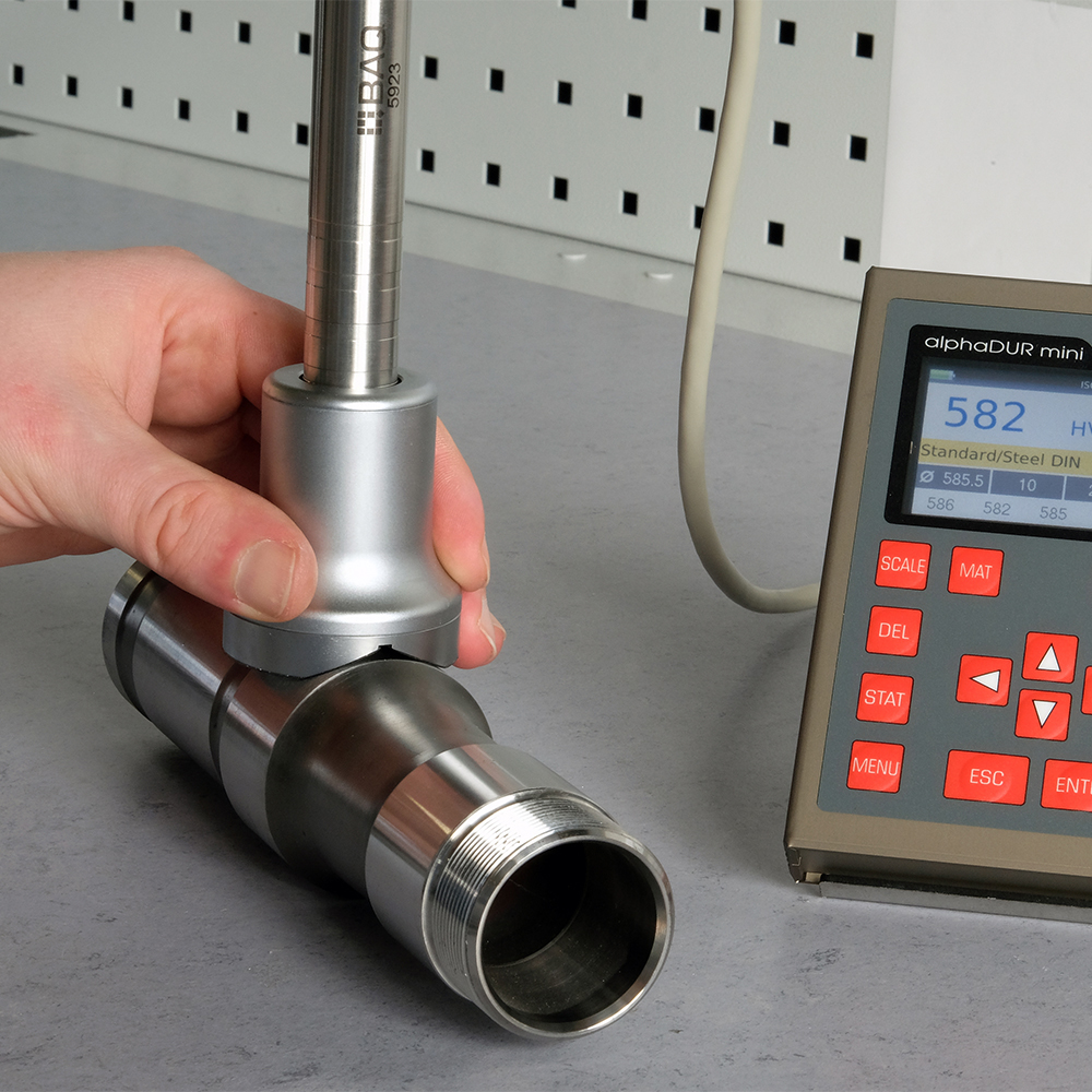 Durimetru portabil cu ultrasunete alphaDUR mini II – varianta mică, portabilă a aparatului alphaDUR II care a fost și este utilizată cu succes în testarea durității de mulți ani. Tehnologia este identică, iar accesoriile sunt compatibile.