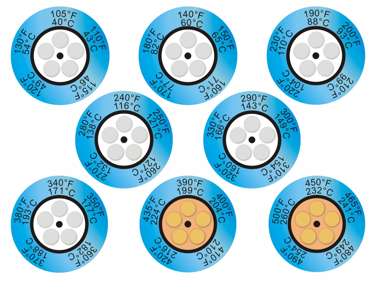 Benzile și indicatoarele de temperatură ireversibile Thermax schimbă culoarea în mod permanent, indicând temperatura maximă atinsă și se pot utiliza în cele mai multe aplicații în care temperatura este un factor important.