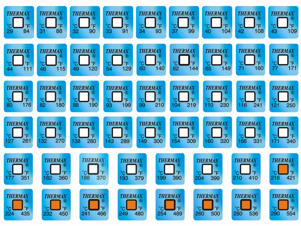 Benzile și indicatoarele de temperatură ireversibile Thermax schimbă culoarea în mod permanent, indicând temperatura maximă atinsă și se pot utiliza în cele mai multe aplicații în care temperatura este un factor important.