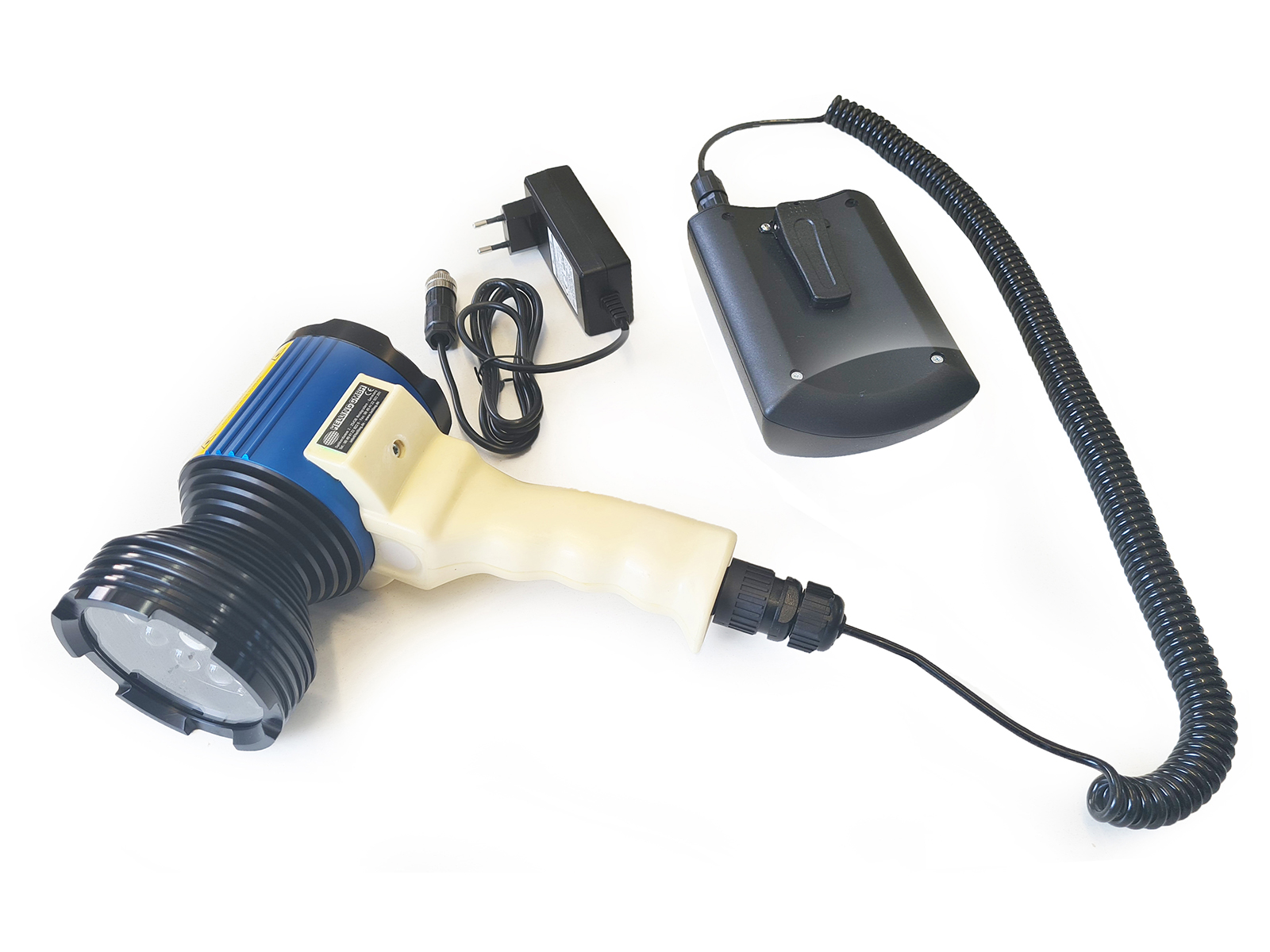 Lampă UV Inspector 3018 A cu acumulator – este o lampă portabilă compactă, cu lumină puternică cu LED UV și LED cu lumină albă reglabilă, alimentată de la baterie.