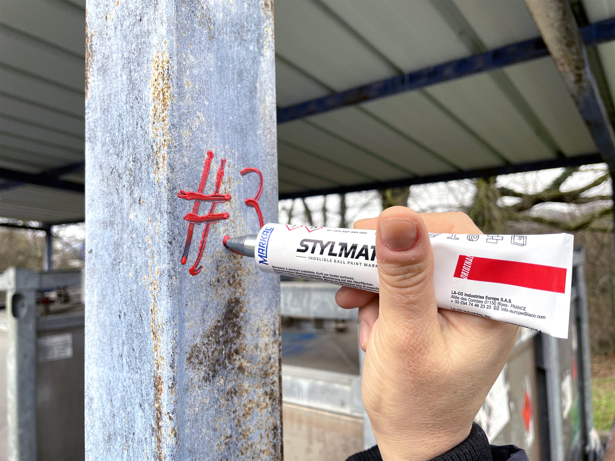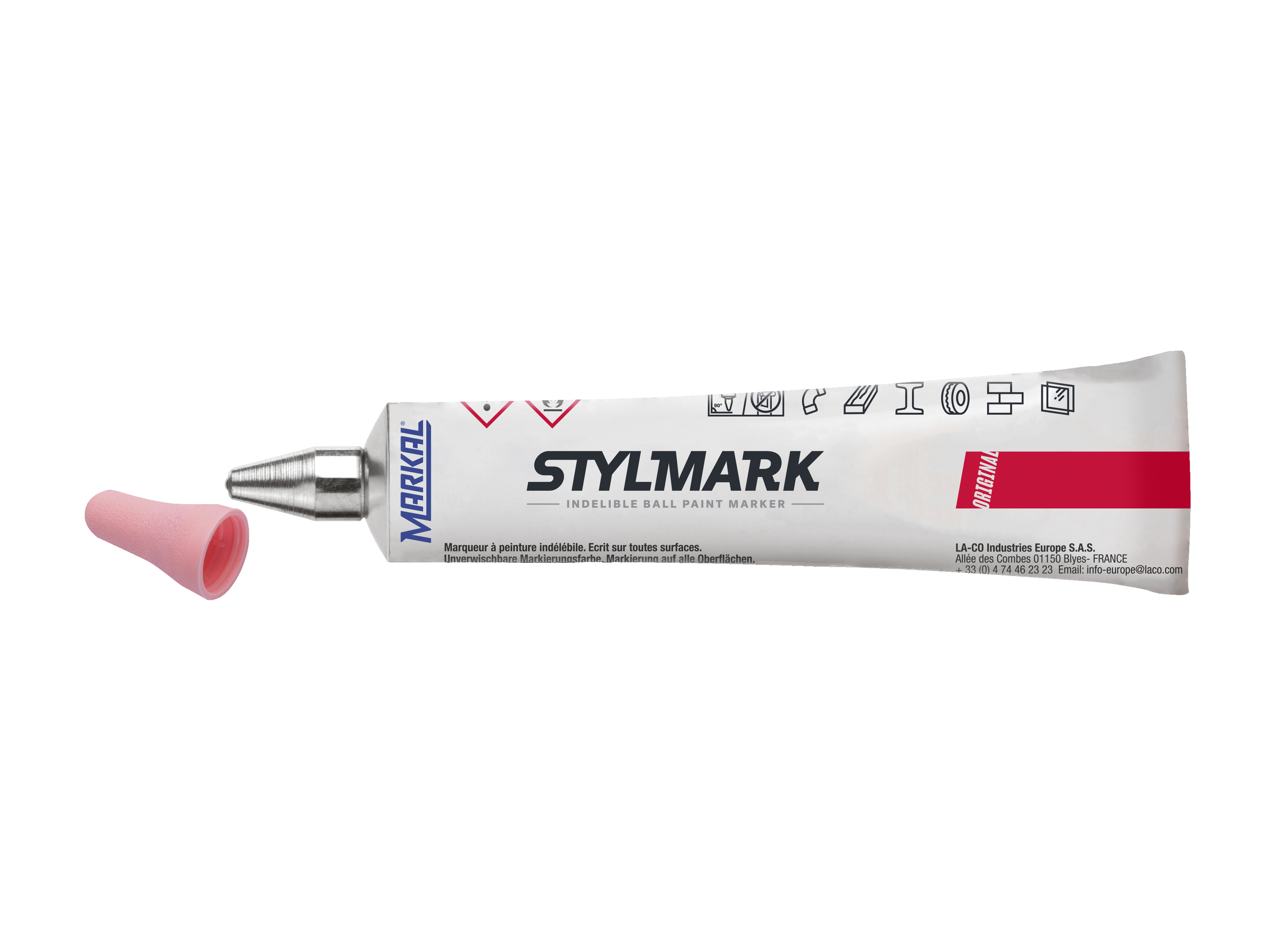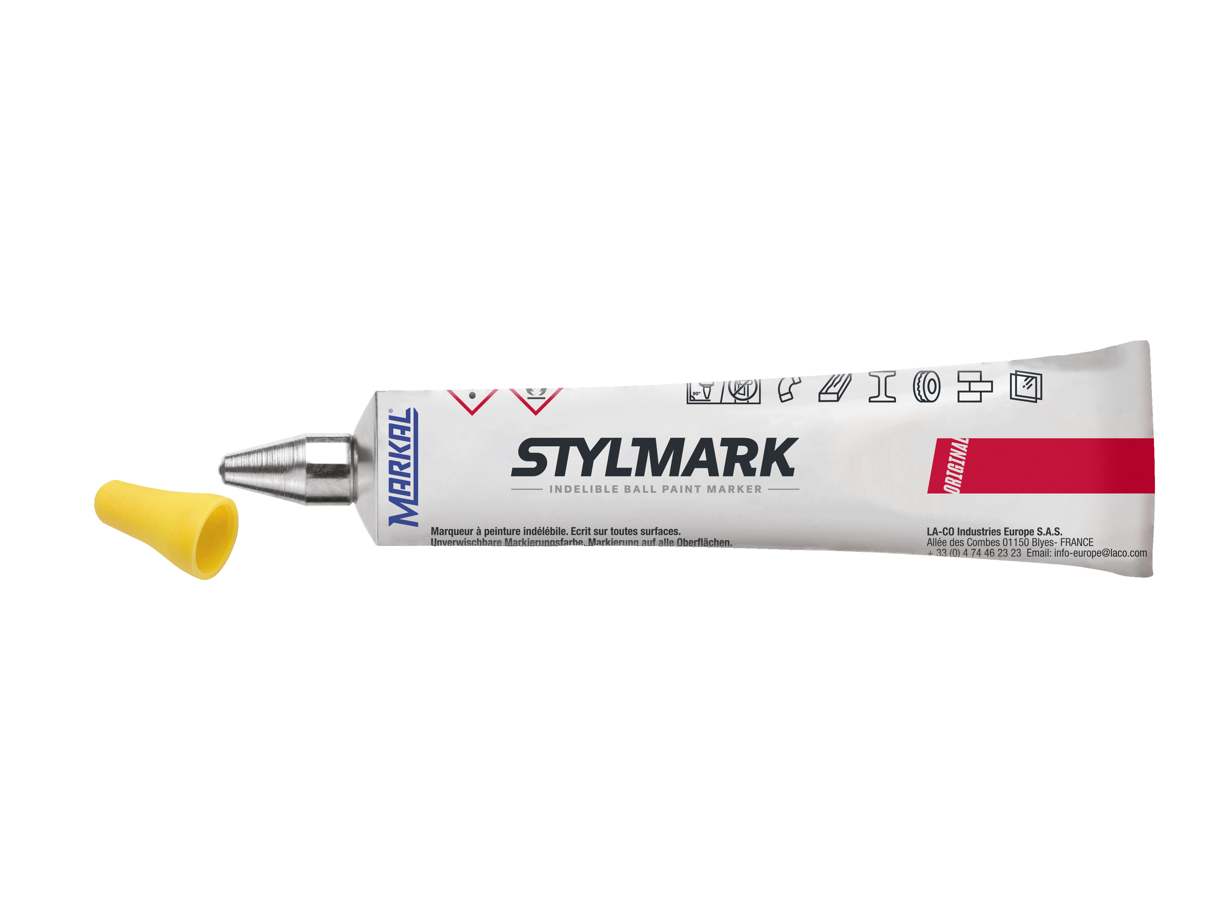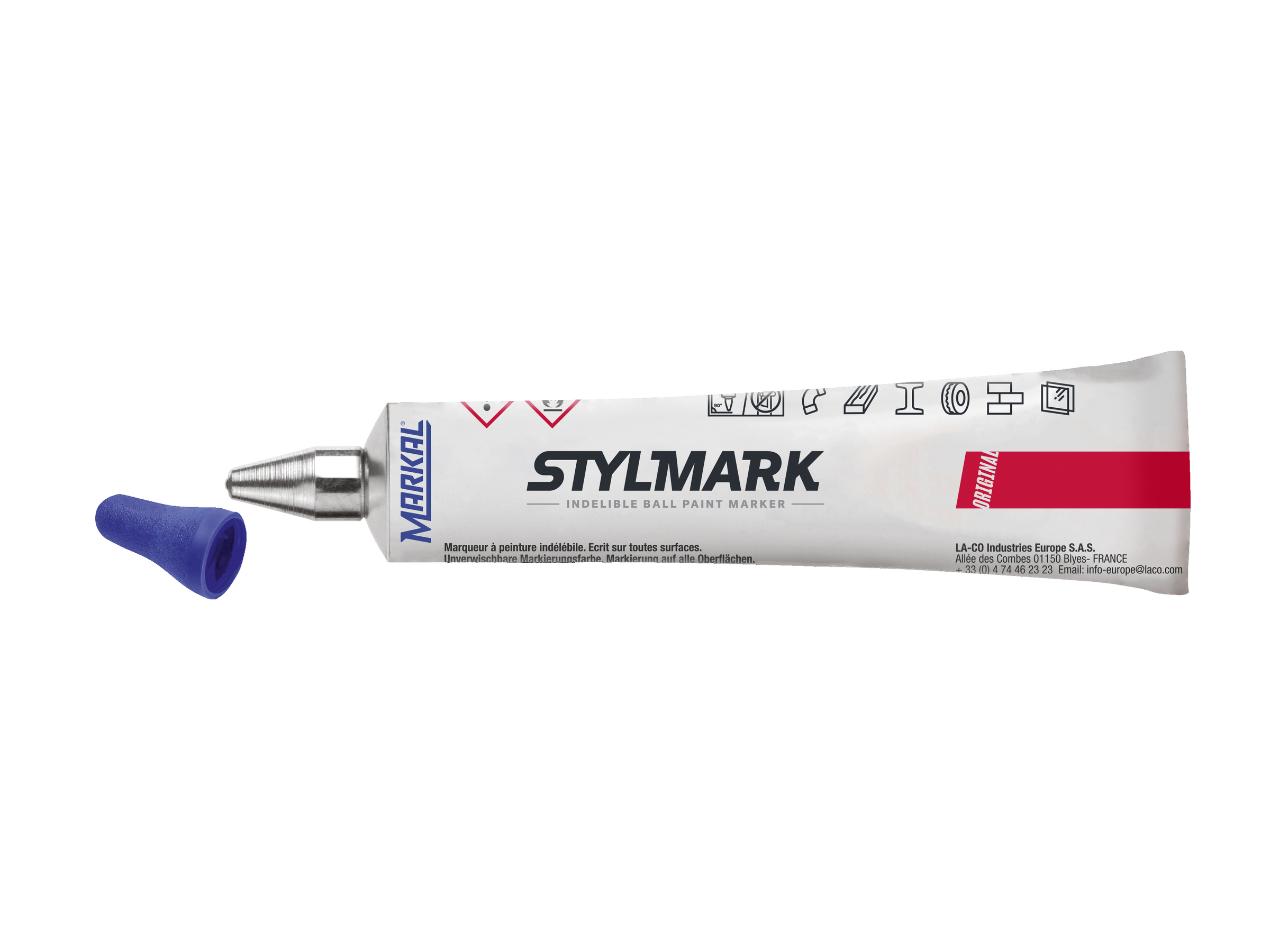Marker cu bilă metalică STYLMARK – un marker cu vârf cu bilă metalică ce realizează marcaje pe o gamă foarte mare de tipuri de suprafețe. Tubul său din aluminiu rezistent și vopseaua groasă fac din acest marker unul pretabil realizării de marcaje pe suprafețe cu asperități, poziționate vertical sau suspendate orizontale. Vopseaua are o aderență foarte bună pe suprafețe cu urme de grăsime sau umede. În plus, aceasta nu conține xylen, lucru ce are ca efect reducerea riscurilor legate de sănătatea utilizatorilor.