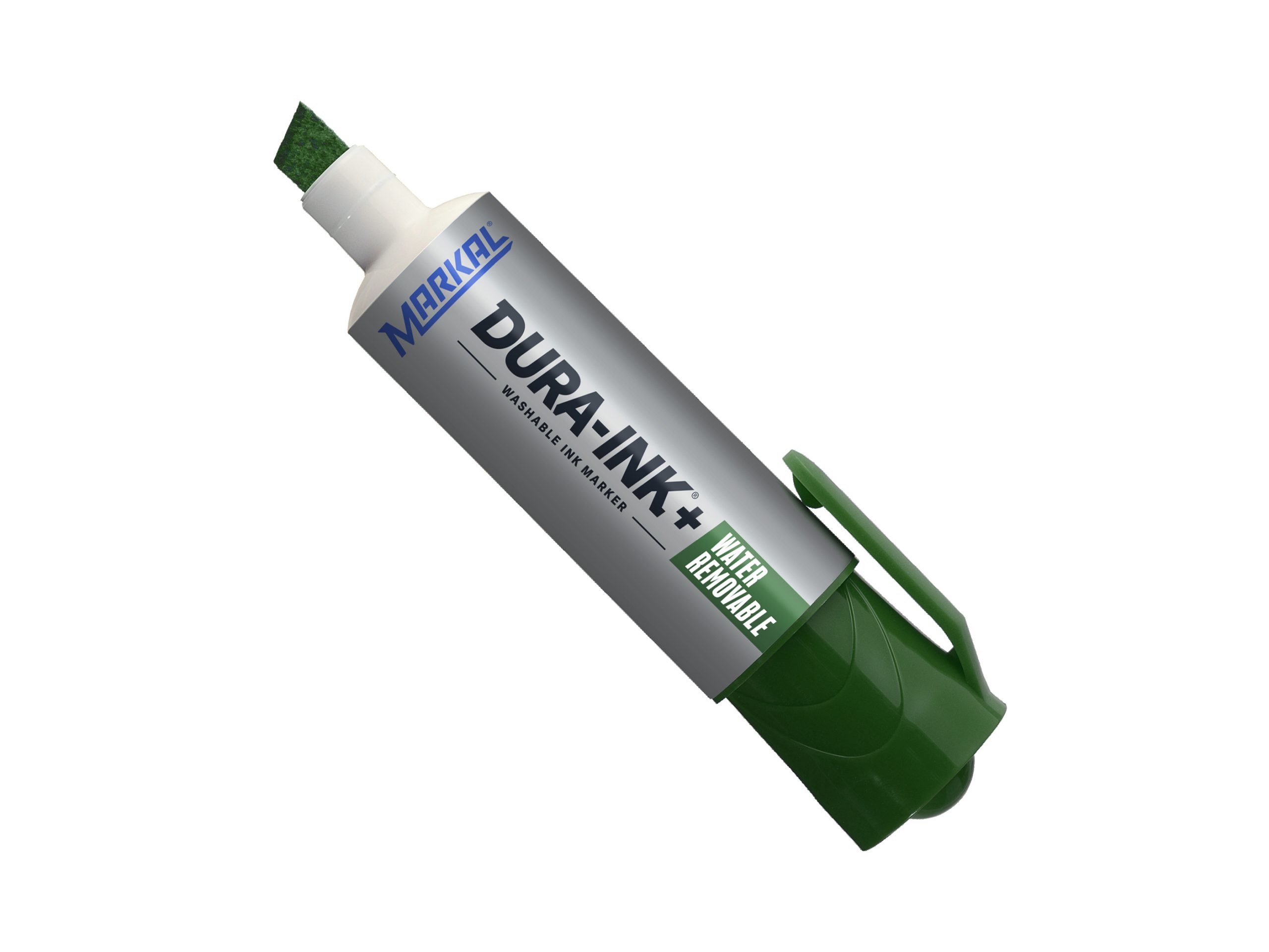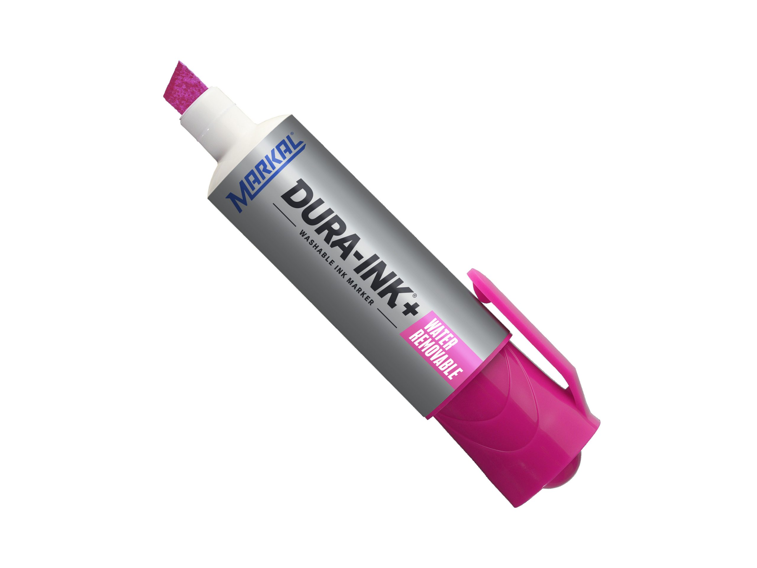 Marker cu cerneală lavabilă pentru marcaje temporare DURA-INK WashAway – un marker cu cerneală temporară, care se șterge rapid și complet de pe suprafețele fără pori, cu apă sau soluții de curățare, fără a lăsa în urmă urme sau reziduuri pe suprafață. Proiectat special pentru aplicații de marcare temporară, formula cernelei foarte vizibile se usucă rapid pentru împiedicarea ștersăturilor sau a marcajelor dispărute și este ideal pentru majoritatea metalelor și sticlei.