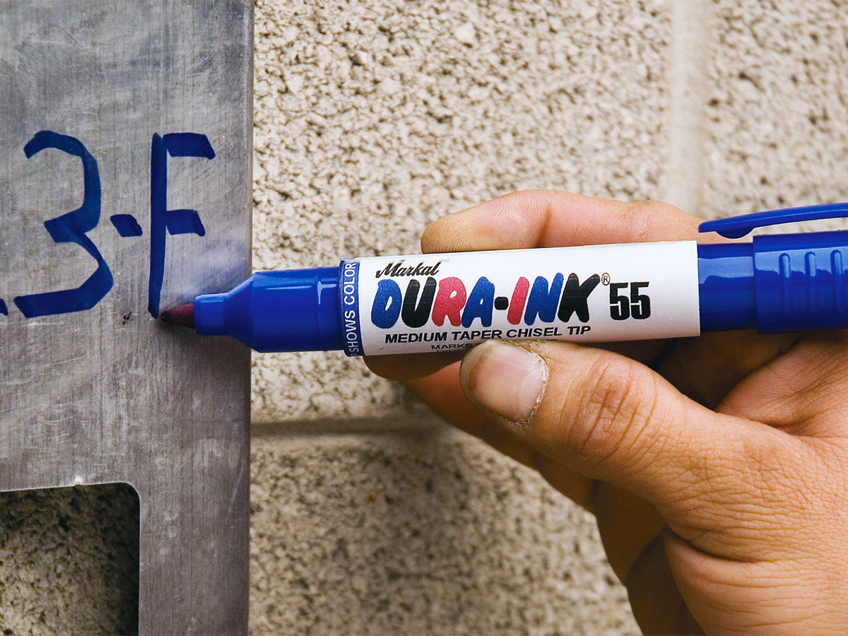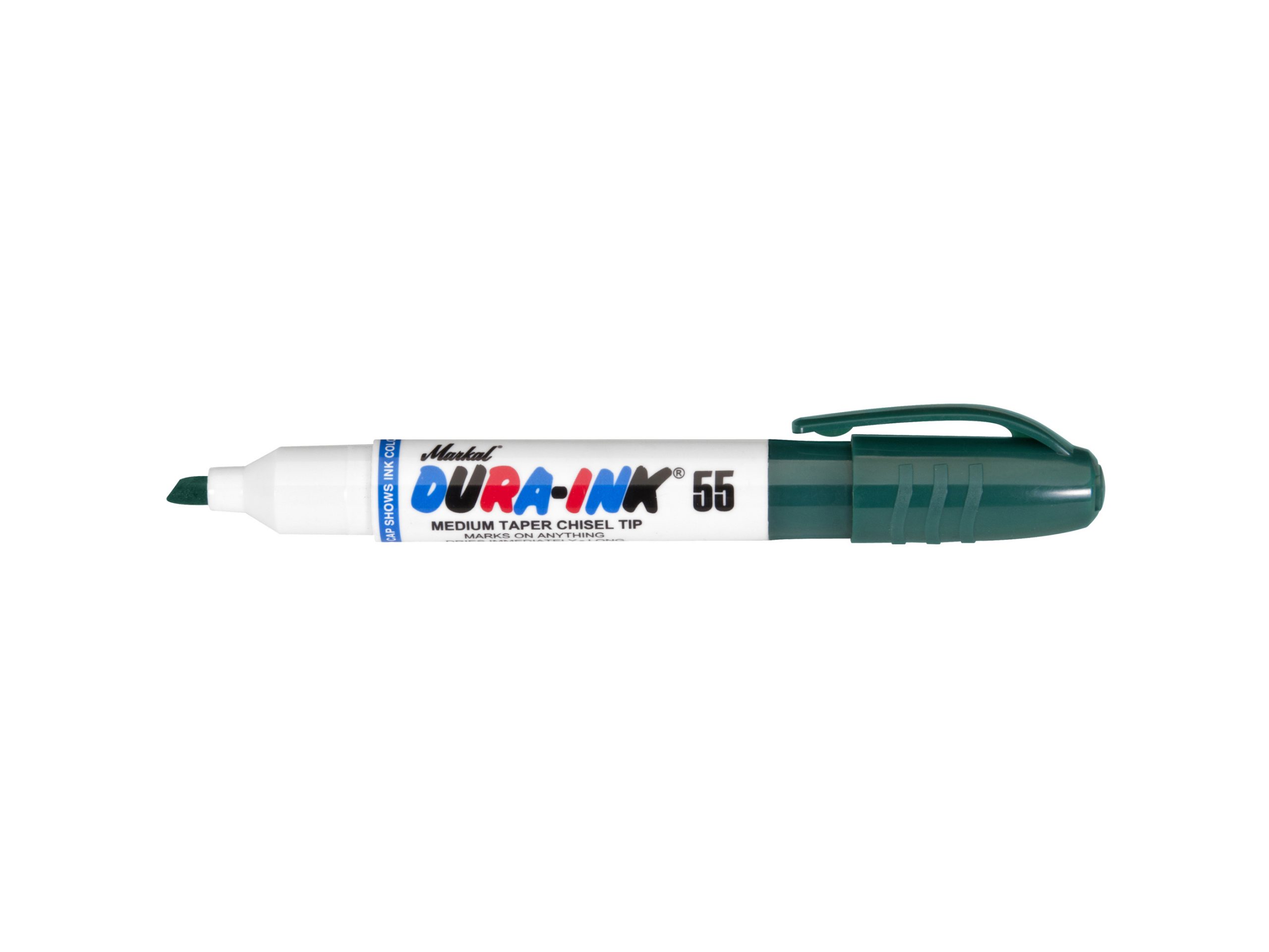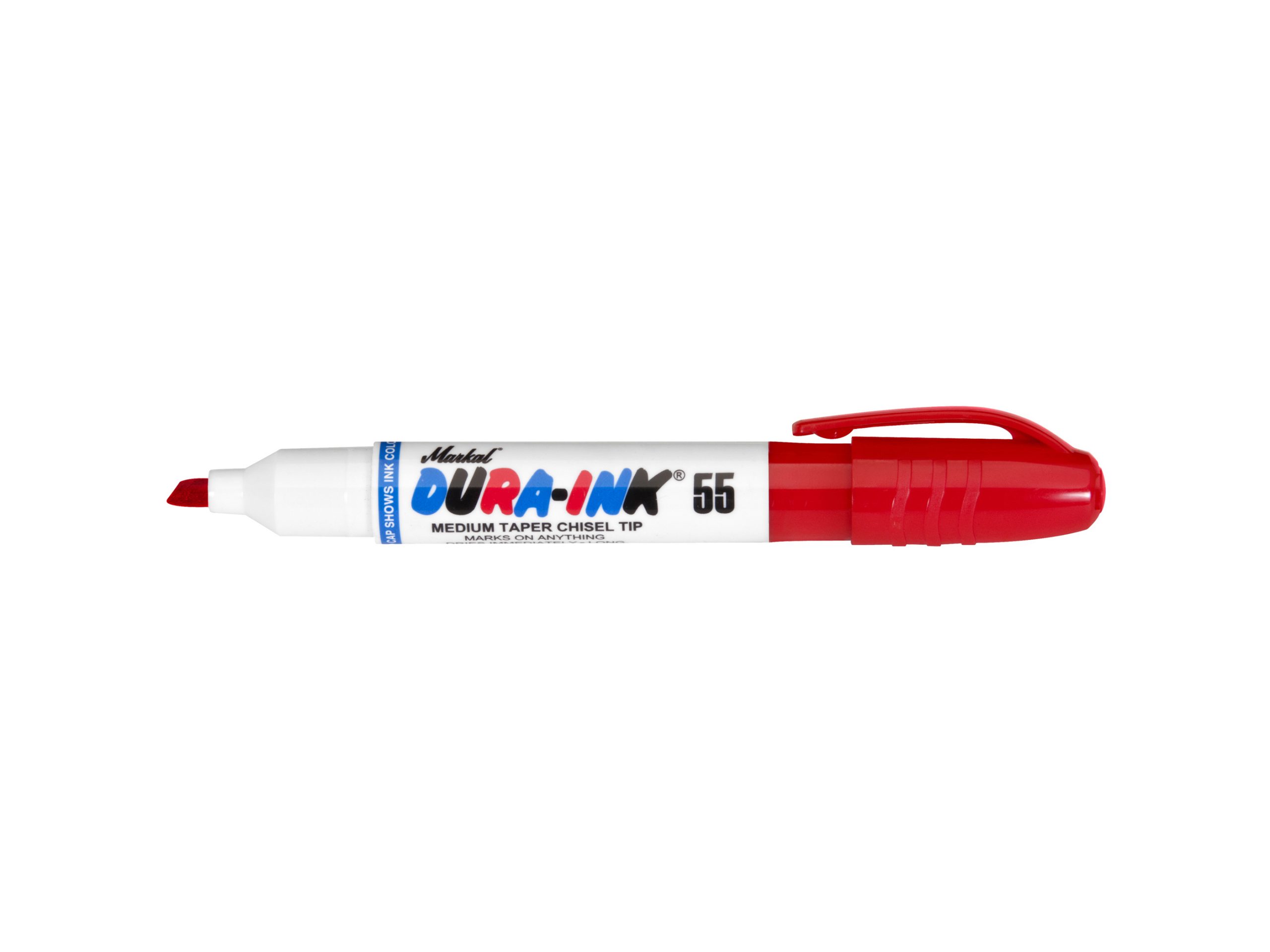 Marker cu cerneală permanentă cu vârf teșit mediu DURA-INK 55 – pentru marcarea liniilor flexibile, fine, care dispune de un vârf teșit mediu pentru producerea de marcaje permanente fine și îngroșate. Acest tub de plastic economic și durabil rezistă utilizărilor industriale și este o alternativă la tuburile de metal mai scumpe.