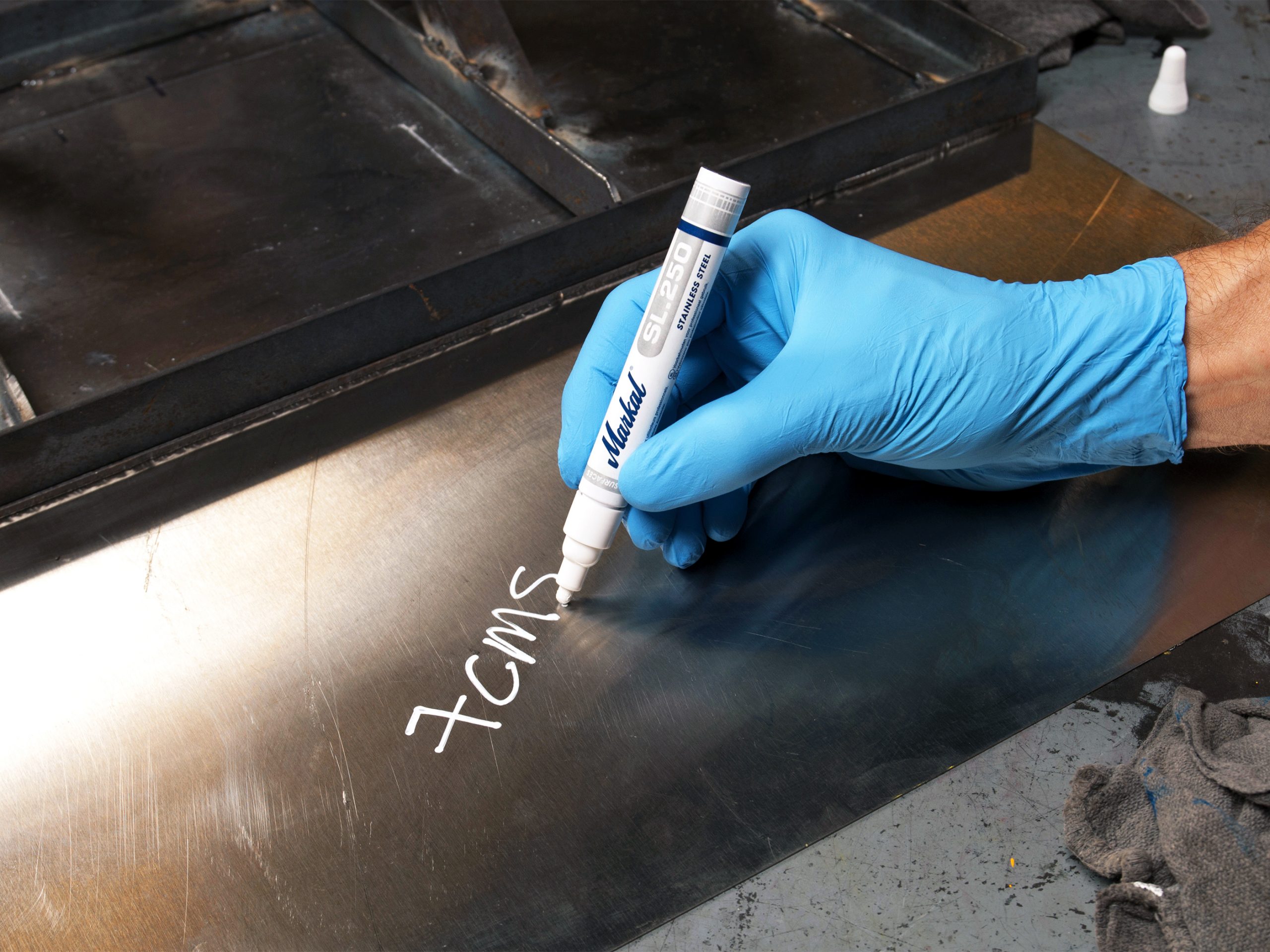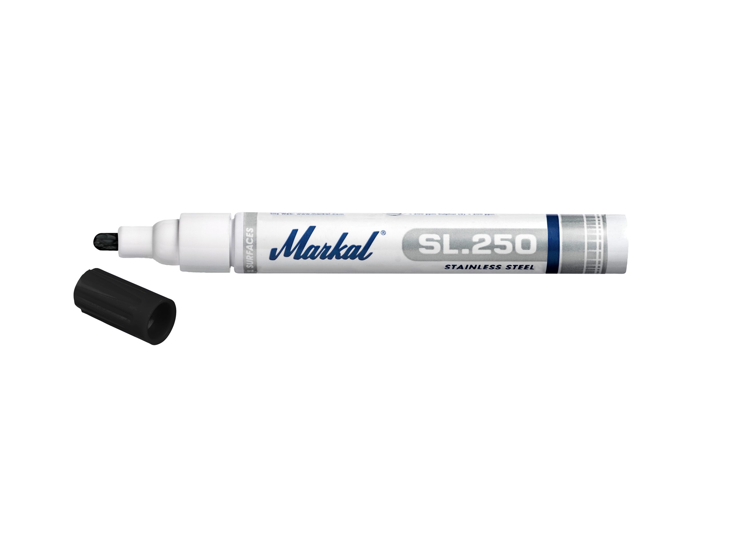 PAINT-RITER+ LOW CORROSION SL.250 este un marker cu vopsea lichidă fără xilen, cu miros scăzut și cu uscare rapidă care îndeplinește cerințele nucleare europene. Conținutul scăzut de sulf și clor permite marcarea sigură pe oțel inoxidabil.