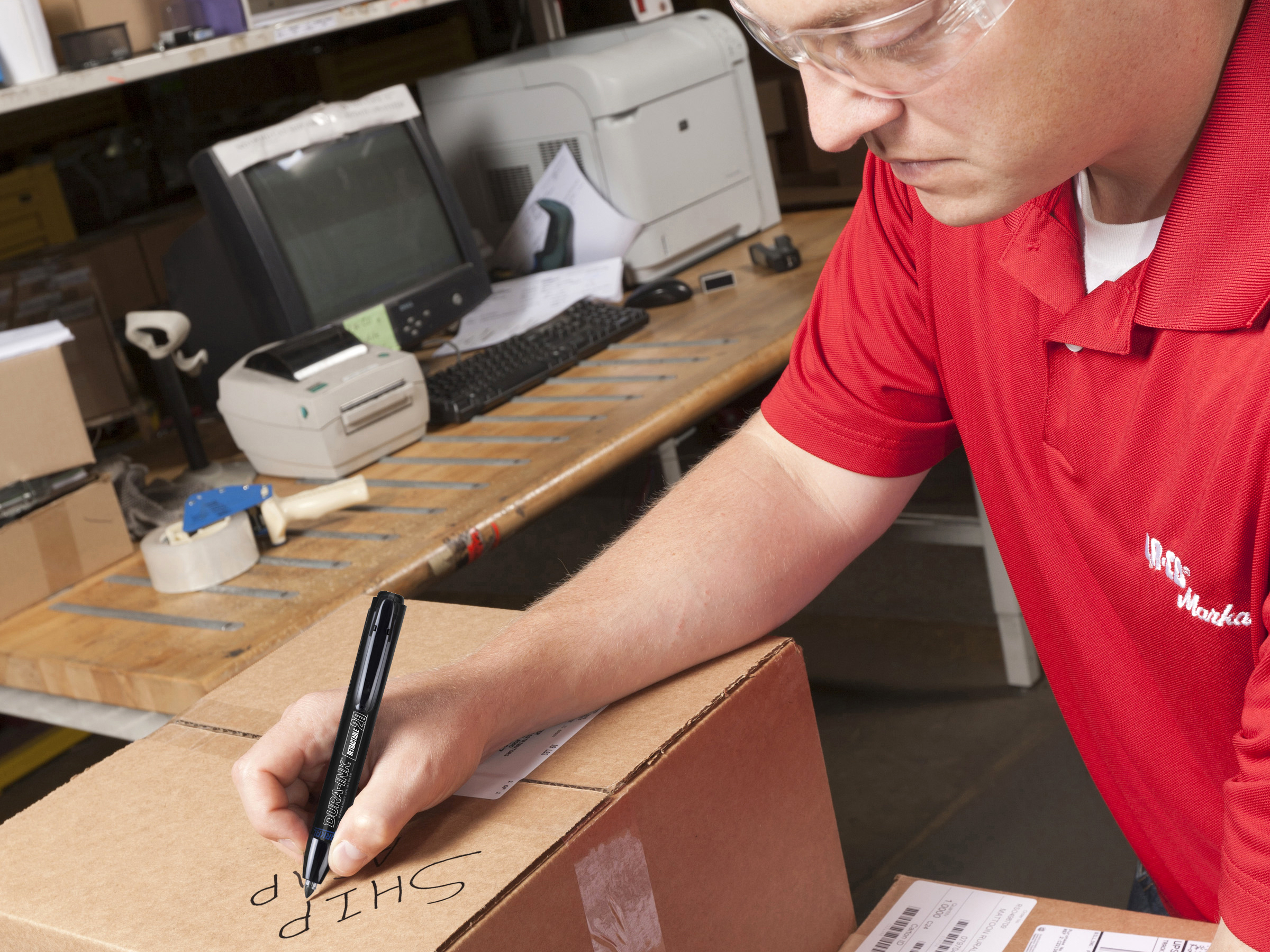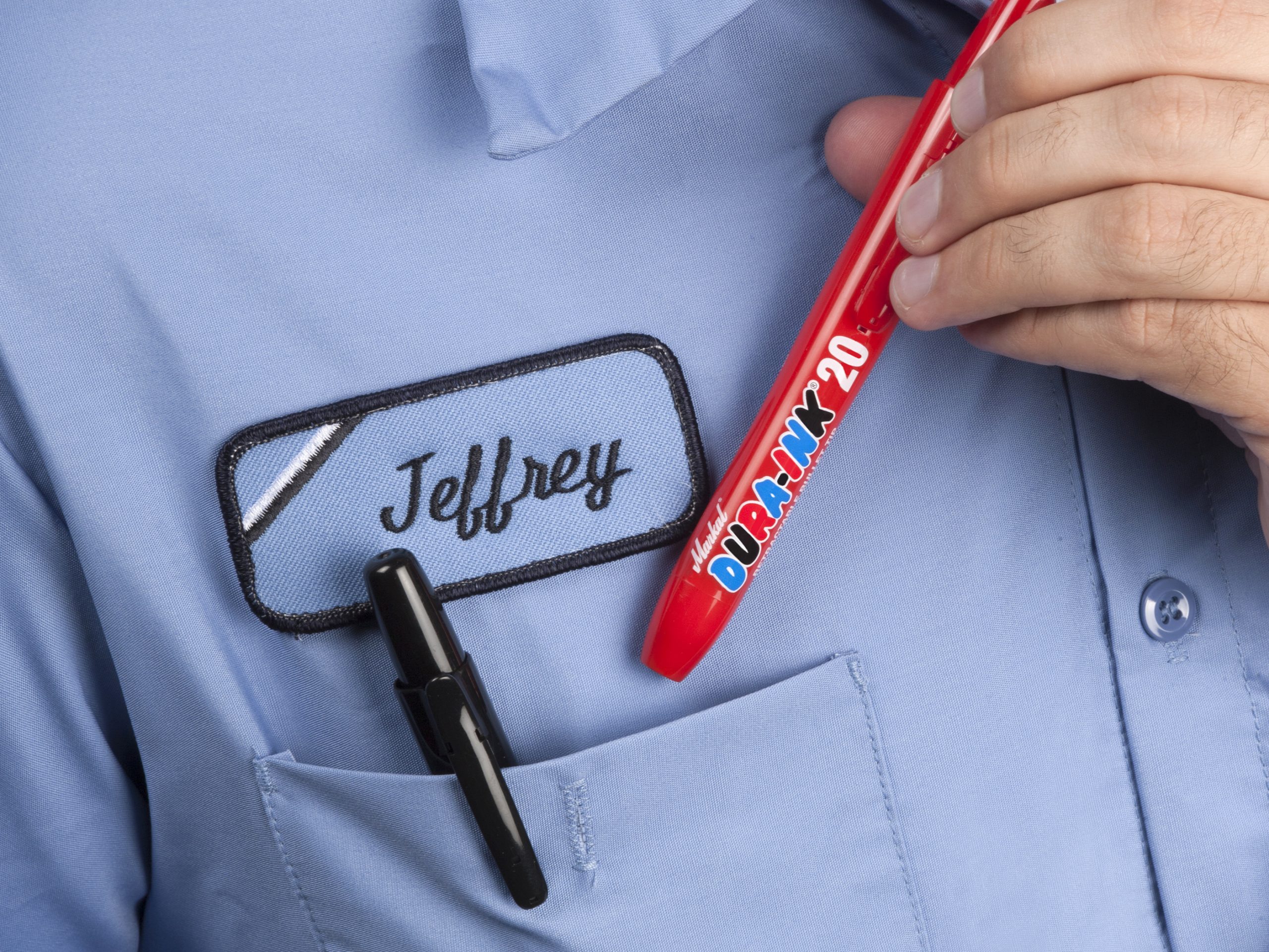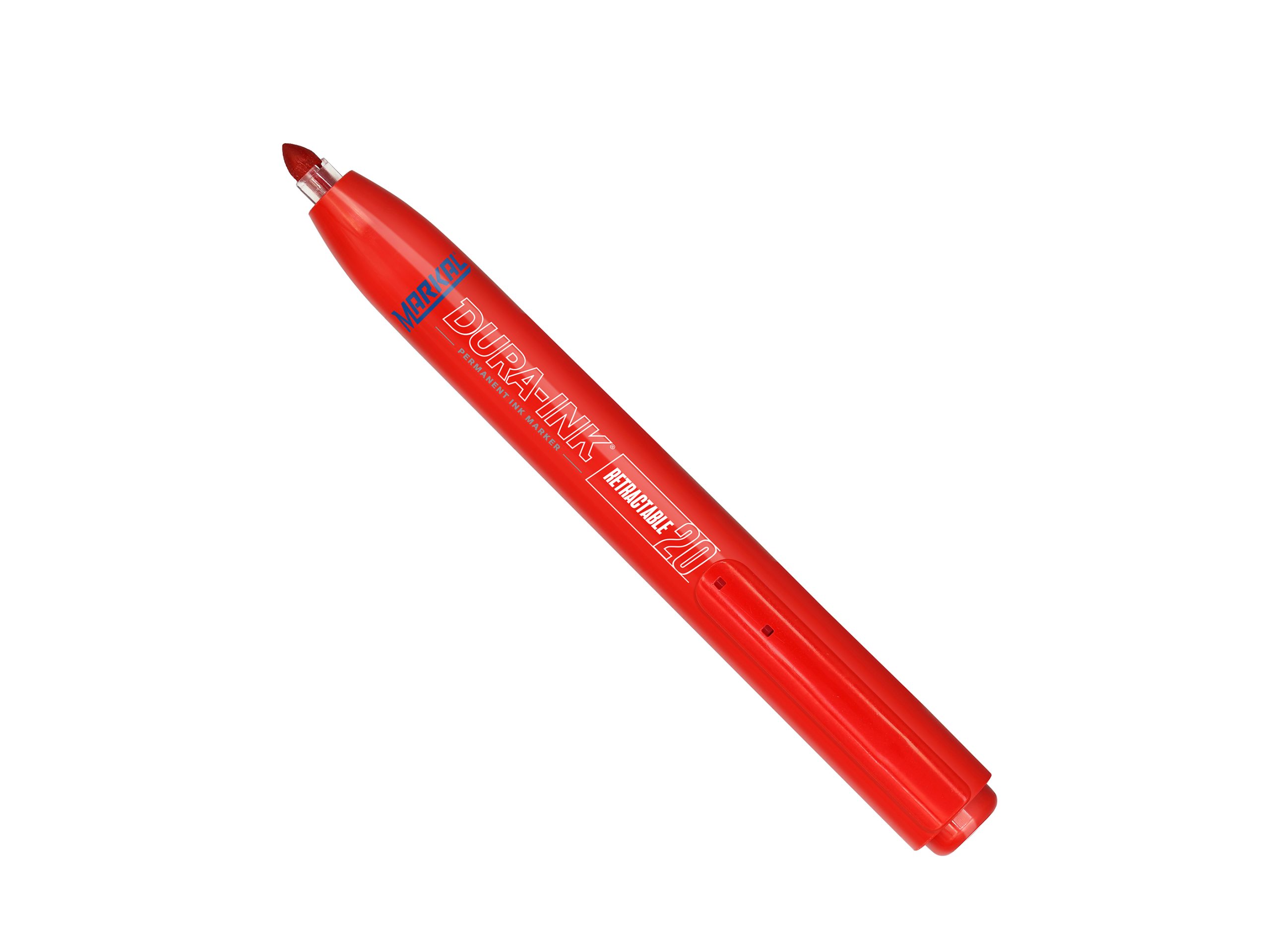 Marker retractabil cu cerneală permanentă și vârf rotund DURA-INK 20 – dispune de un buton manual, pentru deschidere și închidere mai ușoară. Designul comod fără capac îl face ideal pentru a fi utilizat în spațiile de lucru înguste și elimină murdăria și capacele pierdute.