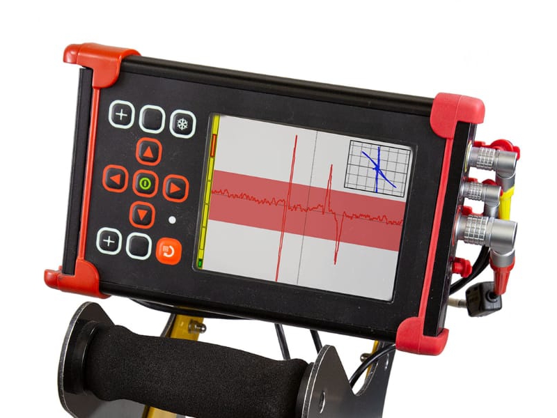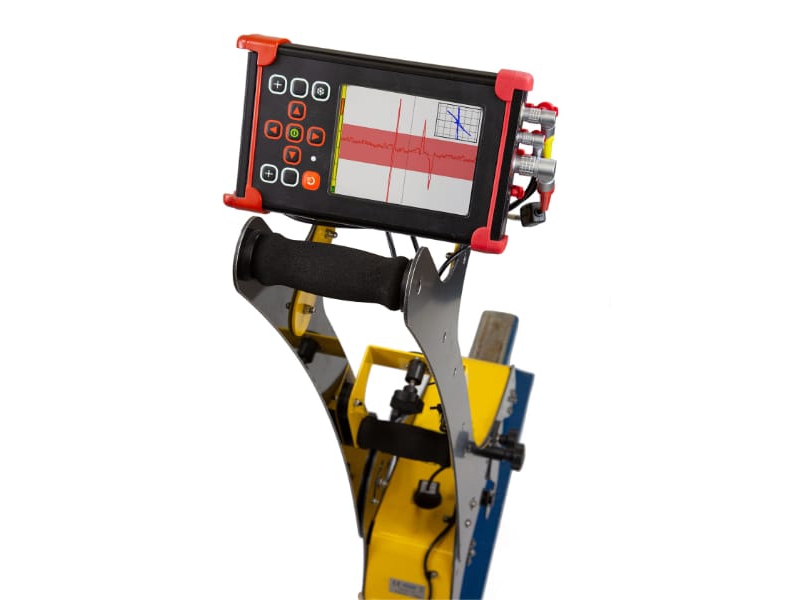 RailCheck este un defectoscop dezvoltat special pentru inspecția șinelor și este ușor de montat pe cu un cărucior de șină și sondele de șină Ether NDE.