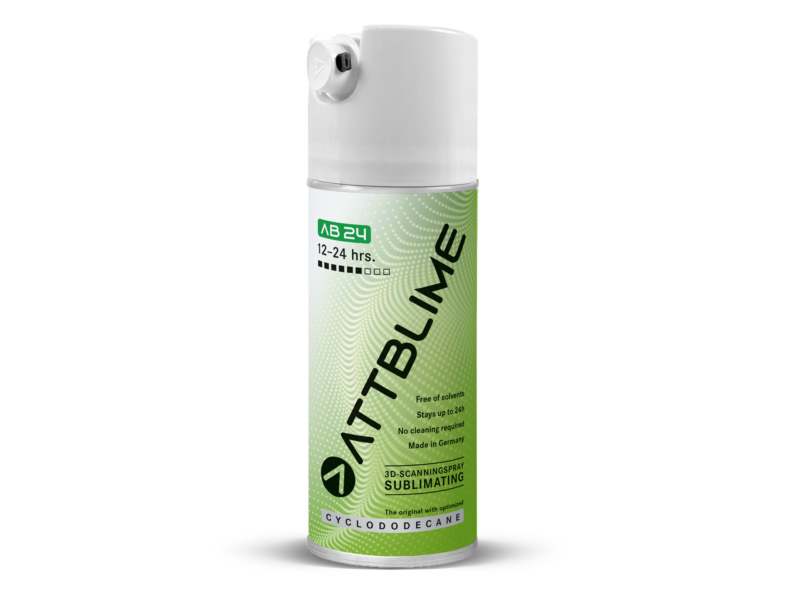 Spray de scanare 3D ATTBLIME AB24 cu protecție temporară a suprafețelor sensibile atunci când se lucrează cu apă și soluții apoase, adezivi apos sau mortare de orice fel. Această versiune, cu un conținut deosebit de mare de ciclododecan, permite utilizatorilor din domeniul arheologiei și restaurării să conserve obiectele și picturile sub formă de spray sublimator de înaltă performanță.