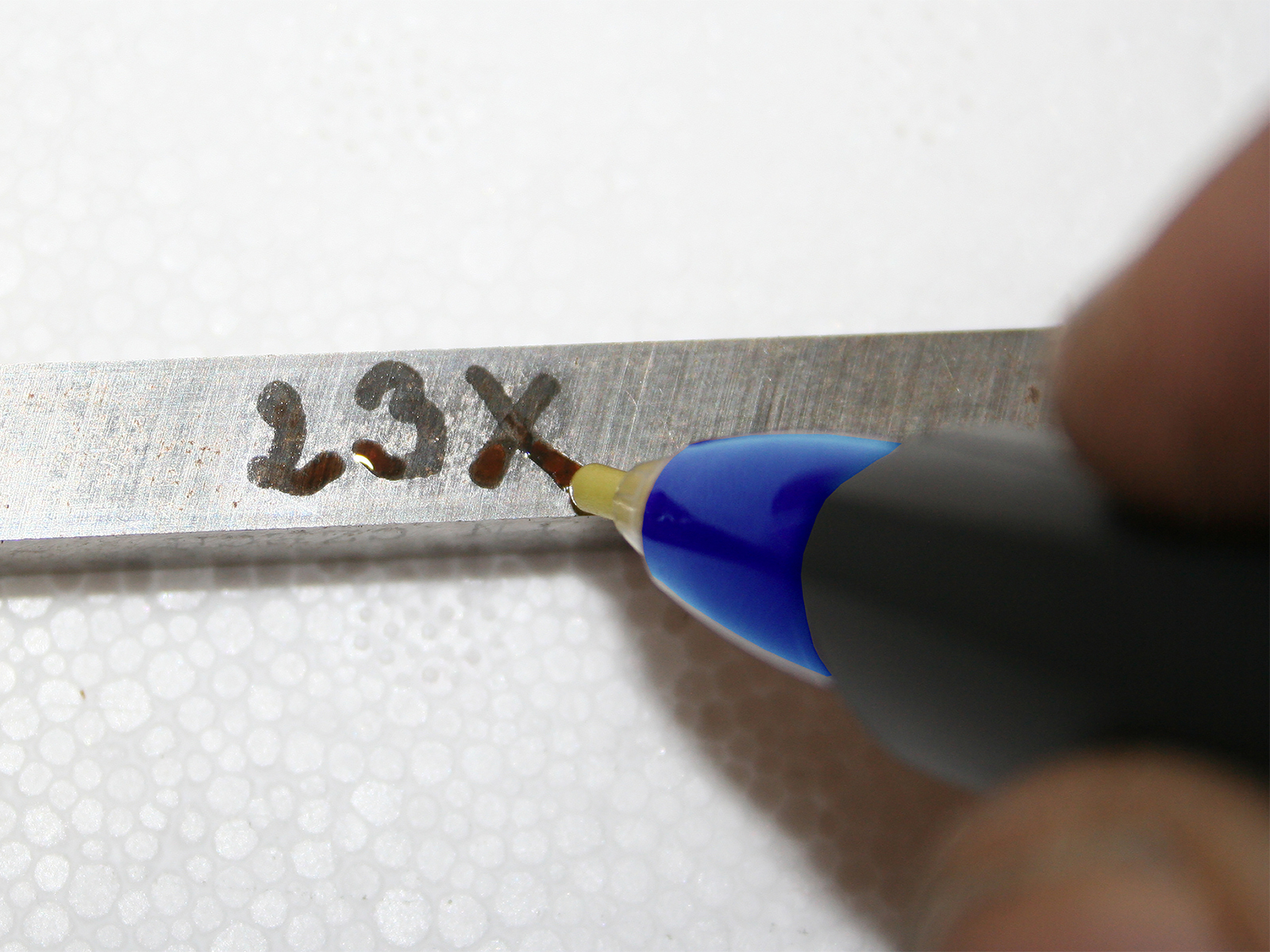 Stilou de gravare cu acid SC.800 – eliberează acid la cerere pentru a marca permanent majoritatea suprafețelor metalice. Utilizați soluția de neutralizare SC.871 pentru a controla procesul de gravare cu acid. Sunt disponibile două cartușe de schimb pentru diferite aplicații de gravare a metalelor.