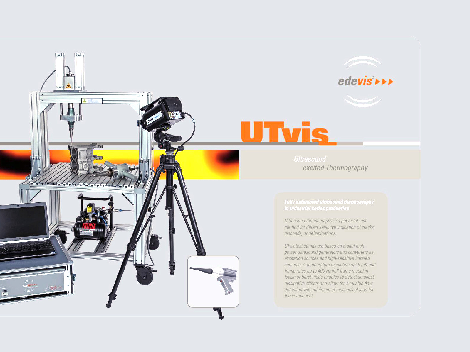 Termografie US UTvis – termografia excitată cu ultrasunete este o metodă de testare nedistructivă care este foarte potrivită pentru caracterizarea structurilor nemetalice și metalice.