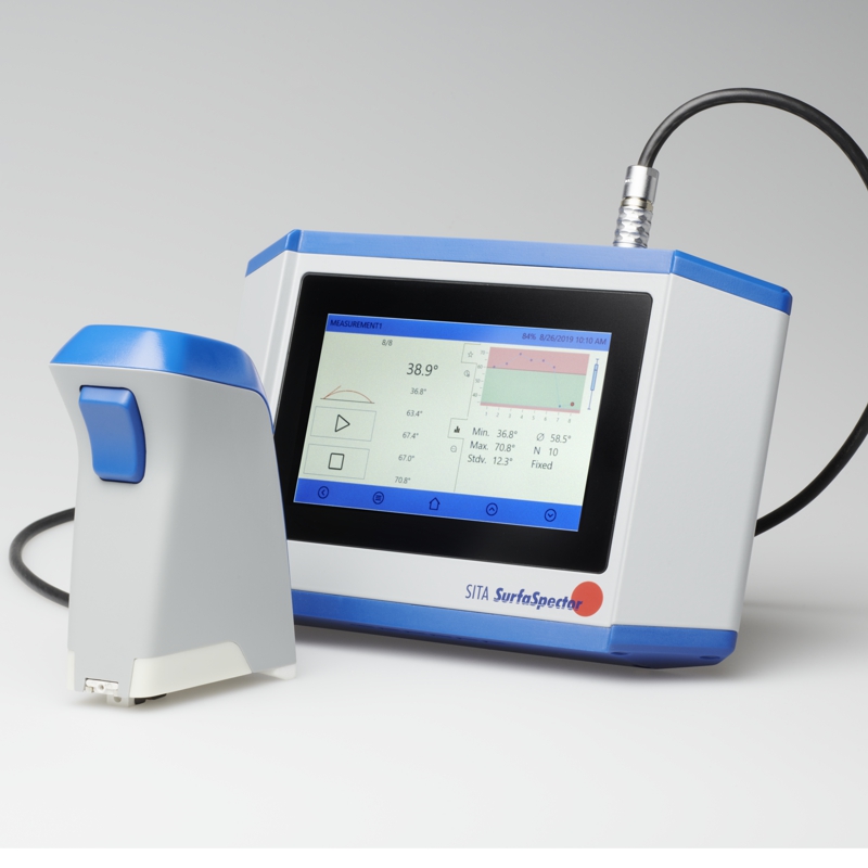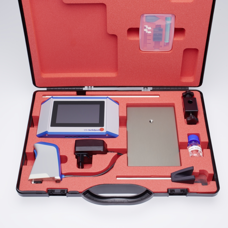 Tester de umectare SurfaSpector – este utilizat pentru testarea rapidă și ușoară a umectabilității suprafețelor din metal, sticlă și plastic, de ex. după pretratarea sau curățarea suprafeței prin măsurarea unghiului de contact.
